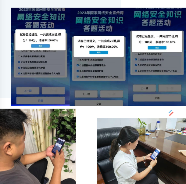 为宣传贯彻习近平总书记关于网络强国的重要思想,贯彻落实《中华人民共和国网络安全法》《中华人民共和国数据安全法》《中华人民共和国个人信息保护法》《党委(党组)网络安全工作责任制实施办法》等法律法规制度,宣传普及网络安全知识技能,9月 6日-9月 13日,正定县组织全县各机关、企事业单位,各乡镇(街道)7000余人积极参加答题活动。通过答题活动,进一步落实了各单位网络安全工作责任,提高了遵守网络相关法律法规意识,依法保护个人信息安全、数据安全意识显著增强,全民数字素养与技能普遍提高。通过答题竞赛活动把网络安全知识普及到每一个角落、每一个人,切实把网络安全宣传活动走深走细走实,在全县营造清朗文明安全网络空间。