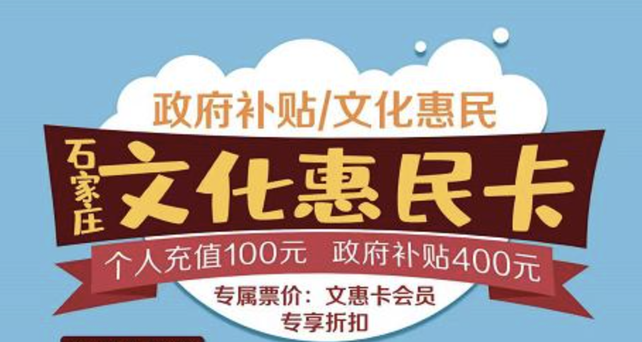 文化惠民卡是一种实名制会员卡,面向省会市民发行,分普通卡和公益卡两类。领取普通卡市民需自己支付100元,享受政府400元看剧补助,卡内额度共计500元;公益卡面向领取最低保障金家庭和残疾人士发放,持卡者可免费享受政府300元看剧补助。