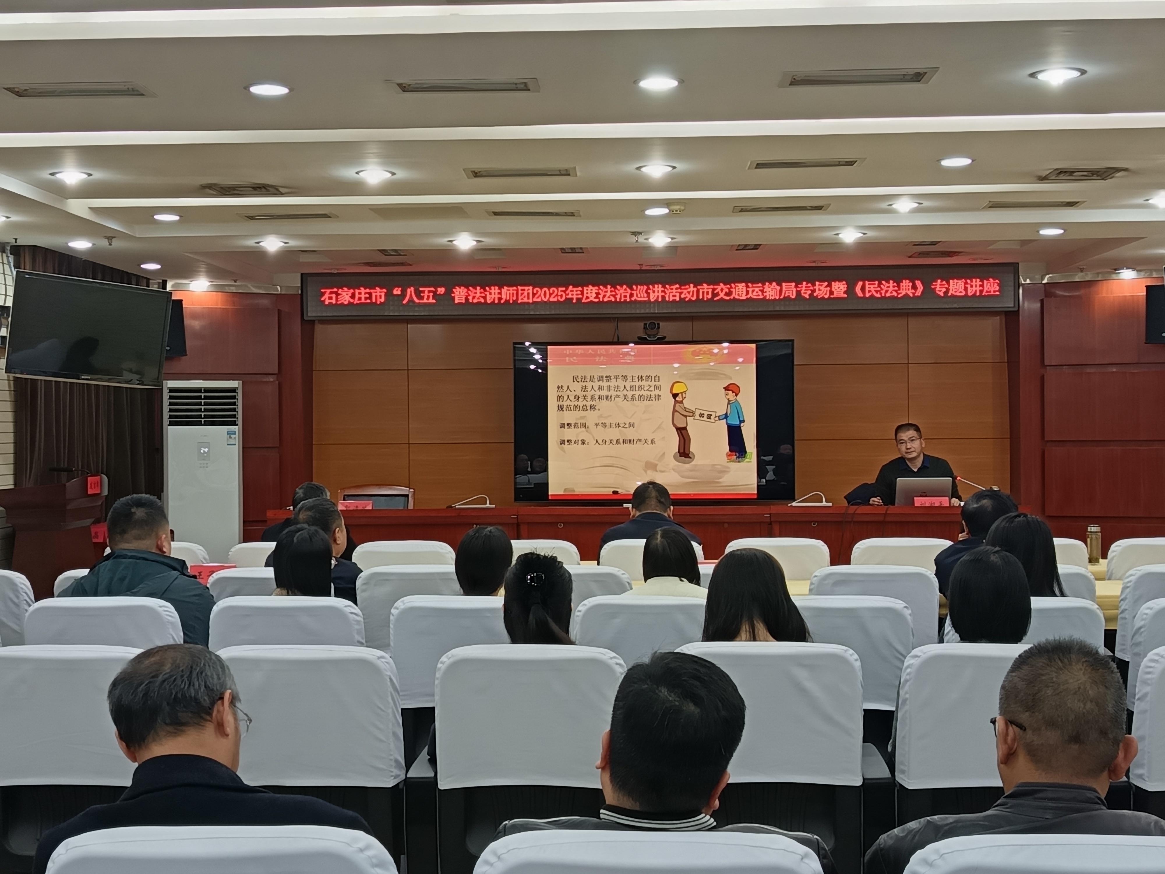 为切实推动《中华人民共和国民法典》在交通运输领域贯彻落实,全面提升干部职工法治素养与依法履职能力,11 月 12 日,我局精心组织开展《中华人民共和国民法典》专题讲座。局直各单位领导班子成员、局机关工作人员共计 60 余人齐聚一堂,接受了一场系统全面、贴合实际的法治熏陶。 讲座现场 此...
