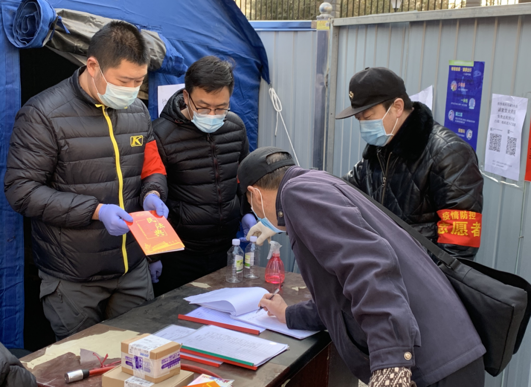 面对严峻的疫情,为切实做好辖区疫情防控工作,长安区阜康街道党工委迅速向驻辖区单位发布了“疫情防控·志愿有我”的号召,动员大家积极参与志愿活动,为抗疫工作贡献力量。通知一经发出,河北冀督律师事务所迅速响应,该所的9名律师主动请缨承包了辖区老旧小区工人街10号院和平北20号院2个防疫检测点轮班值守等任务,协助社区开展核酸检测登记,开展网格化排查、老旧小区门口值勤等工作。