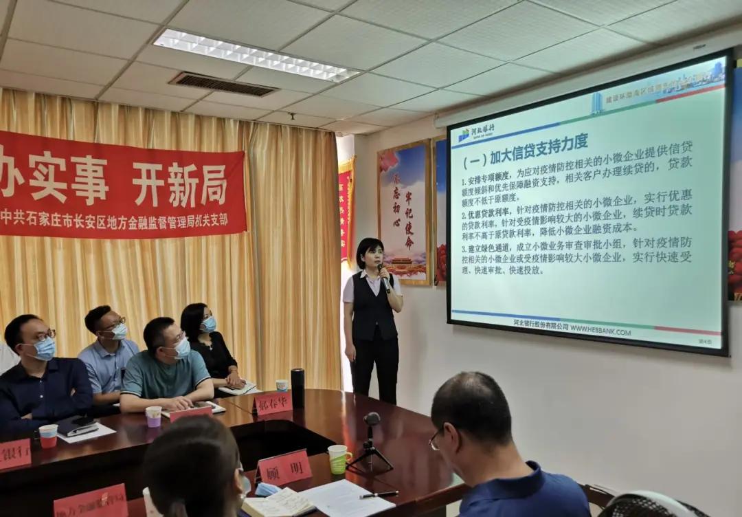 为构建金融有效支持实体经济体制机制,引导金融机构更好地服务实体经济,切实纾解辖区民营企业融资难题,近日,区地方金融监管局举办“纾困解难 汇赢长安”金融支持工作座谈会,旨在汇聚银行、地方金融组织、企业“三方”力量,积极对接实现互助共赢。河北银行长安支行、兴业银行跃进路支行、招商银行裕华支行等3家银行,汉邦小额贷款、汇丰源典当、联创融资担保等11家地方金融组织以及辖区有融资需求的8家民营企业的负责人参加了此次活动。