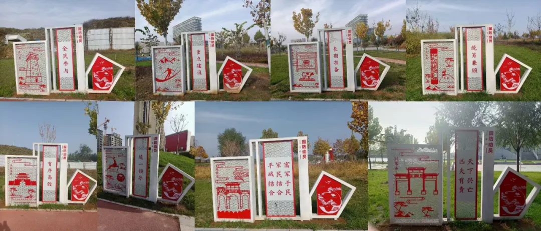 以国防动员方针、原则为主要内容,选取鹿泉八景为元素,以镂空剪影的艺术形式,将国防动员知识与鹿泉文化特色完美融合,生动展现鹿泉文化的同时,让广大民众更加了解国防动员知识,打造鹿泉新名片,营造浓厚的国防动员氛围。