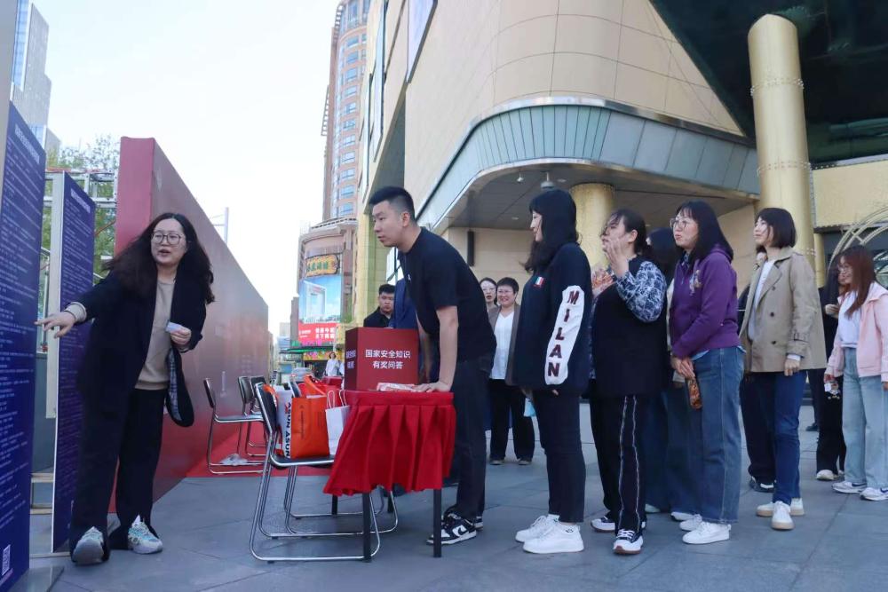 4 月 14 日下午,市国资委“2025年全民国家安全教育日宣传活动”在北国商城举行。2025年是新版《中华人民共和国国家安全法》颁布实施十周年,4月15日是第十个全民国家安全教育日,主题为“全民国家安全教育 走深走实十周年”。为深入学习宣传贯彻总体国家安全观,营造共同维护国家安全的浓厚氛围,在北国商城正门广场举办了全民国家安全宣传教育系列活动,市国资委办公室工作人员现场为市民发放国家安全宣传单,并进行国家安全法治宣传讲解。