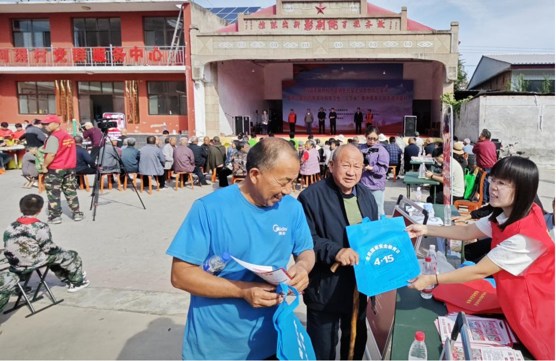 为深入贯彻总体国家安全观,筑牢基层国家安全防线,9月25日上午,平山县将国家安全宣传教育融入文化、科技、卫生“三下乡”活动。在三汲乡河渠村,县委办公室、县委宣传部、文广体旅局、科工局、卫健局等23个单位,以通俗易懂、接地气的形式全面普及国家安全知识,切实增强农村群众的国家安全意识。