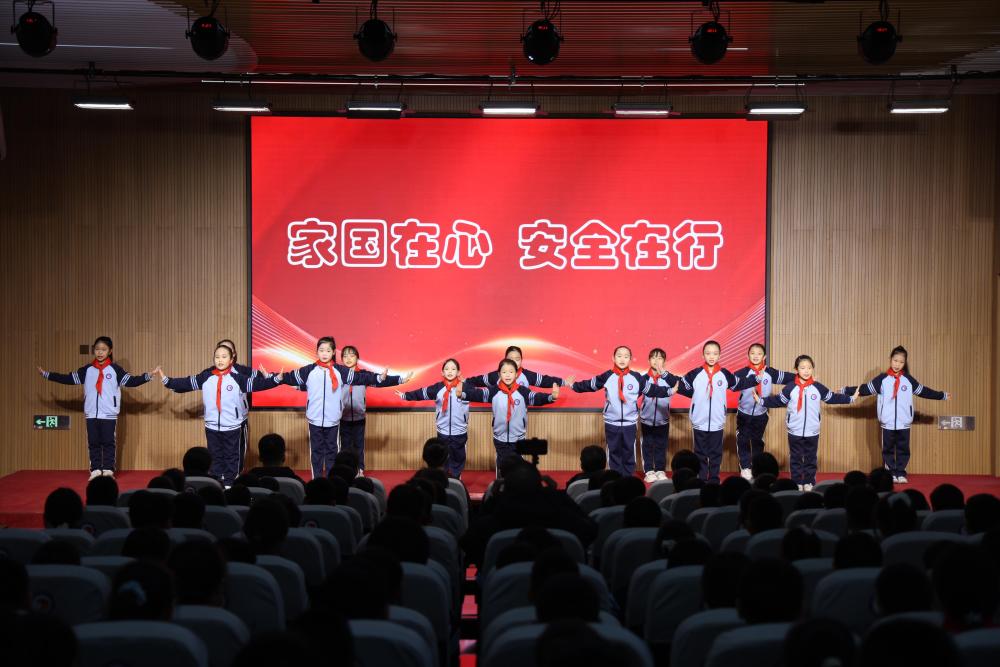 活动设置两大环节,首先面向四五年级学生开展主题教育活动。现场通过手势舞、情景剧、知识抢答、朗诵等丰富形式,将知识性与趣味性深度融合,让学生在沉浸式体验中理解国家安全内涵,推动国家安全理念内化于心、外化于行。