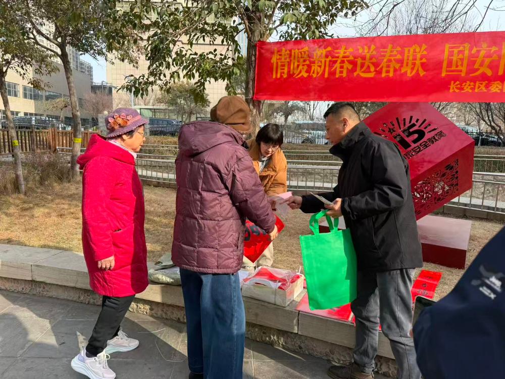 2月10日,腊月二十三,正值北方传统的小年时节,为切实增强全民国家安全意识、将国家安全理念融入新春民俗,在春节来临之际,长安区委国安办联合区政府办在长安国家安全主题公园组织开展“情暖新春送春联 国安同行送祝福”主题活动,向群众传递新春问候的同时,普及国家安全知识,营造“人人关心国家安全、人人维护国家安全”的浓厚社会氛围。