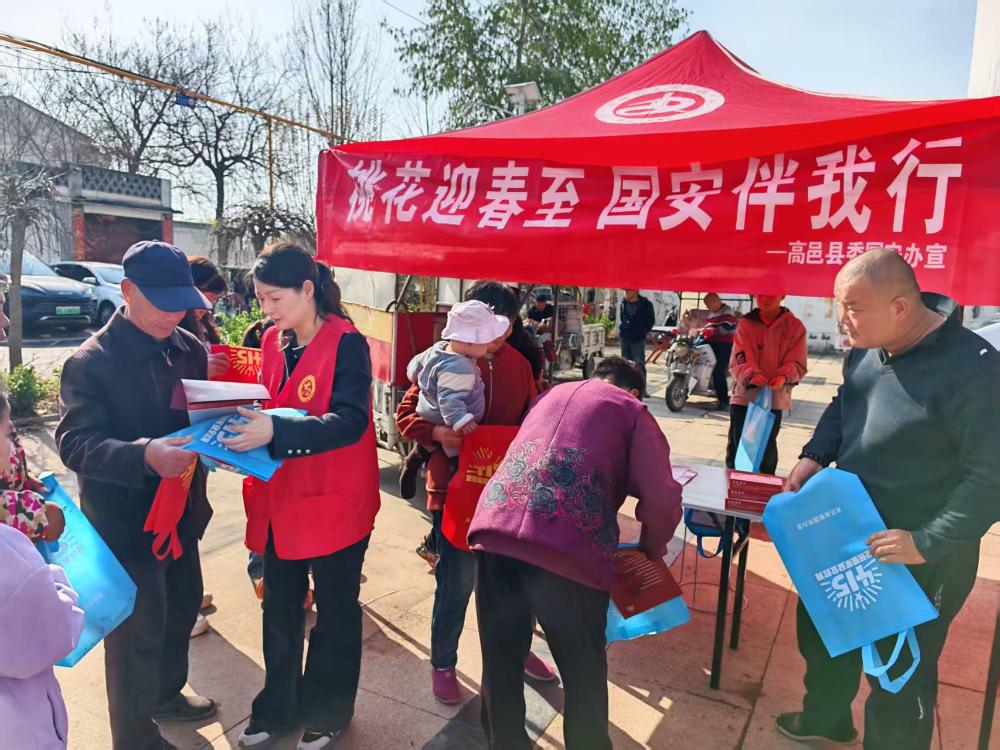 3月29日,石家庄市高邑县委国安办依托2026年高邑县第三届“桃花节”,以“桃花迎春至 国安伴我行”为主题,组织开展国家安全进农村宣传活动,把国家安全知识送到千家万户。