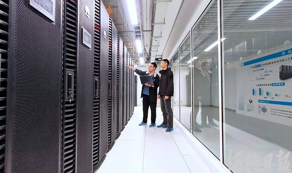 10月18日,河北人工智能计算中心工作人员在机房内检查设备工作情况。河北日报记者刘英摄