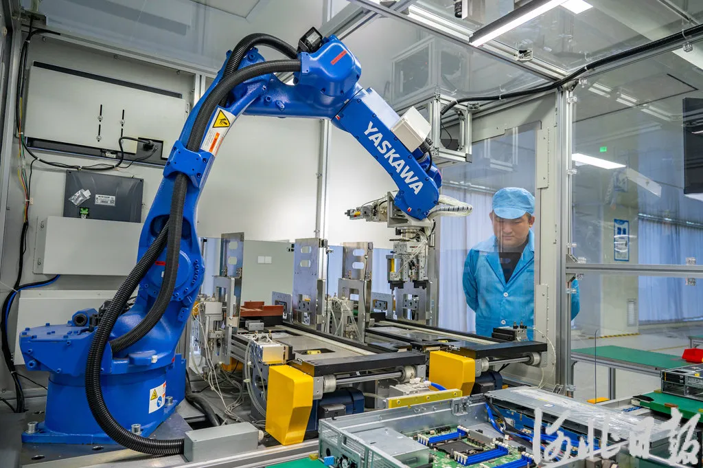 位于张家口市的宝德数坝数字产业(河北)有限公司,机器人在组装服务器。(河北日报资料片)记者赵杰摄 产业数字化转型升级,助推实体经济提质增效—— 托起汽车车门,配合着一侧的胶枪,机械臂轻微弯曲调整“身姿”,一个优美的旋转,便完成了一个汽车车门的涂胶工作。在保定长城精工,有一条先进的工业产线——全球首条5G超高可靠低时延汽车柔性产线。 “这条产线最大特点是用5G-A无线网络替代传统铜线介质工业控制总线,实现‘一网增效’。”长城精工自动化行云科技事业部副部长袁占江说,传统硬线网络生产线一年因网络通信故障,会造成数十个小时停工,而5G-A无线网络可大大降低停机时间,预计单个工厂年可增加8亿元产值的交付量。 长城精工降本增效,得益于企业上云。 河北工业门类齐全,在按国家行业分类标准划分的41大类工业行业中,我省就有40类,数字化转型需求强劲。 以数智技术赋能新型工业化,催生新质生产力。推动企业上云,传统产业大省主动拥抱数字化变革。 在河钢唐钢高强汽车板有限公司,工作人员借助电脑就能完成远程精准吊装——5G无人天车在10多米高空中往来穿梭,20多吨重的钢卷被轻松吊起,工作人员彻底告别“爬上爬下、冬冷夏热”的作业环境。 在石家庄四药集团,大输液生产实现全产业链数字化——利用大数据,药物结构设计、靶点发现与验证等面临的繁重任务变得轻松;质量控制实现检测数据自动传递、自动判断…… 在固安申通快递华北转运中心,“小包裹”跑出了“加速度”——近百个进出港卸货口同时操作,自动摆轮、交叉带等数字化设备同步运转。一件快递被放到传送带上,随即被自动扫描、分拣、直到装车,整个过程不到10分钟。 一组有力的数据,印证河北智改数转全面提速。截至目前,全省培育工业互联网平台329个,连接工业设备1034万台(套),服务企业14.3万家。上云企业超过9.6万家。企业工业设备上云率保持全国第一。 数字化治理提质提速,城市治理变“智理”—— “没到现场,竟然中标了。”10月18日,河北赢驰建筑工程有限公司负责人贺书英,登录邢台市公共资源交易信息网,查询到2024年大屯乡农产品加工仓储综合体项目的中标结果。 通过数字化,“双盲”评审从招标报名,到开标签到、专家评审,再到确定中标企业,全程网上完成,真正实现了开标“不见面”,交易“零跑腿”。这不仅降低了企业投标成本,更提高了交易效率。 我省大力推进“互联网+政务服务”,建成全省一体化政务服务平台,打造“冀时办”App,全方位提升“一网通办”能力。目前全省1301个政务服务事项实现全流程网办,网办率达100%。 挖掘拓展数据应用场景,一朵朵“智慧云”,让百姓共享数字红利,美好生活触手可及。 在唐山,开平区大柳树小学和开平小学的六年级学生齐聚云端,同上一节音乐课;在石家庄,市民张晓阳用社保卡,不仅可以乘坐石家庄地铁,还能旅游观光、就医购药等。在饶阳,管理人员只需通过手机App设定好蔬菜生长所需各项参数,并开启大棚内的各个智能设备,就可实现“云端”种菜。 河北各地着力建设智慧城市、数字乡村,数字技术在衣食住行方方面面带来便捷体验,并将在不断创新中引领新的智慧生活。 大河之北,风起“云”涌。 乘2024中国国际数字经济博览会东风,数字河北发展新图景将徐徐展开。一场数字之旅将再次照见新未来。