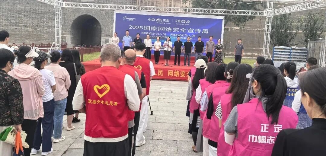 9月15日,正定县2025年国家网络安全宣传周活动在北城门广场启动。网安周正定活动由县委网信办主办,县委宣传部、县委保密机要局、县教育局、县科工局、县公安局、人行正定营管部、县融媒体中心、县总工会、团县委、县妇联等部门协办,各乡镇(街道办)分管领导,各通信公司,正定自媒体联盟部分成员以及来自不同行业的青年志愿者代表、巾帼志愿者、职工代表、群众代表等参加启动仪式。启动仪式现场共展出网络安全、数据安全、各种反诈防诈保护个人信息展牌40余块,向过往群众发放带有网络安全知识二维码的宣传画册、海报、宣传折页、手提袋等宣传品5000余份册。通过向群众详细讲解关于网络诈骗、个人信息泄露、网购陷阱、不正规贷款等常见的网络安全隐患,以及防范化解风险的措施和办法,进一步增强了广大群众的网络安全意识,提高了网络安全防护技能。