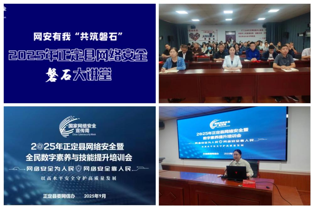 9月19日,正定县委网信办开设“网安有我,共筑‘磐石’”2025年正定县网络安全磐石大讲堂,举办2025年度网络安全暨全民数字素养与技能提升培训活动。全县各部门单位、乡镇(街道)分管网信工作领导80余人参加了培训。网信办全体班子成员出席会议,相关人员参加会议。会议邀请河北新龙科技网络安全领域专家,围绕网络安全的重要性、法律法规规范、安全意识提升、技能方法等方面,开展有针对性网络安全知识培训。现场还发放宣传周网络安全折页、倡议书、河北省网络文明生态公约等共300余份。通过培训,进一步提升了全县各乡镇、各部门领导的网络安全意识,促进了数字素养与技能提升,为做好全县网信工作奠定了基础。