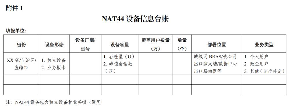 一、细化工作方案,有序实现网络升级。基础电信企业要认真摸排NAT44设备部署应用情况并建立NAT44设备信息台账,制定“网络去NAT”工作方案和时间表,有序推进全网NAT44设备使用规模逐步降低。工业和信息化部、中央网信办将组织选取部分区域开展“网络去NAT”试点,到2025年7月底前实现试点区域基础电信企业NAT44设备总容量停止增长,主要移动互联网应用(APP)固网侧IPv6流量占比不低于70%。