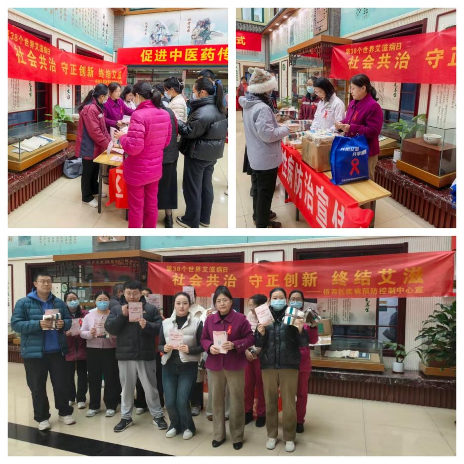 桥西区疾控中心联合辖区各级医疗机构,在皮肤性病门诊、发热门诊、体检中心等重点科室,统一设置防艾主题宣传栏,循环播放科普短片,确保就诊人群随时能获取防艾知识。11月28日,联合石家庄市中医院,对就诊患者、工作人员主动发放健康手册,耐心引导其根据自身情况主动参与艾滋病检测,共发放宣传折页200余份,宣传品100余份,构建起“医疗专业干预+精准健康宣教”的双重防控防线。