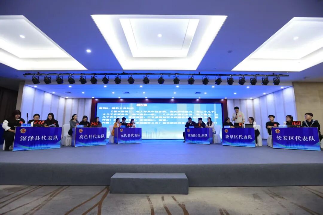 竞赛采用“初赛+决赛”两阶段模式,初赛阶段由各县(市、区)通过闭卷测试、必答题、抢答题等形式层层遴选,最终选拔出优秀代表队晋级全市决赛。决赛环节聚焦基层法治实践需求,题目设置必答题、抢答题、案例分析等多个题型。