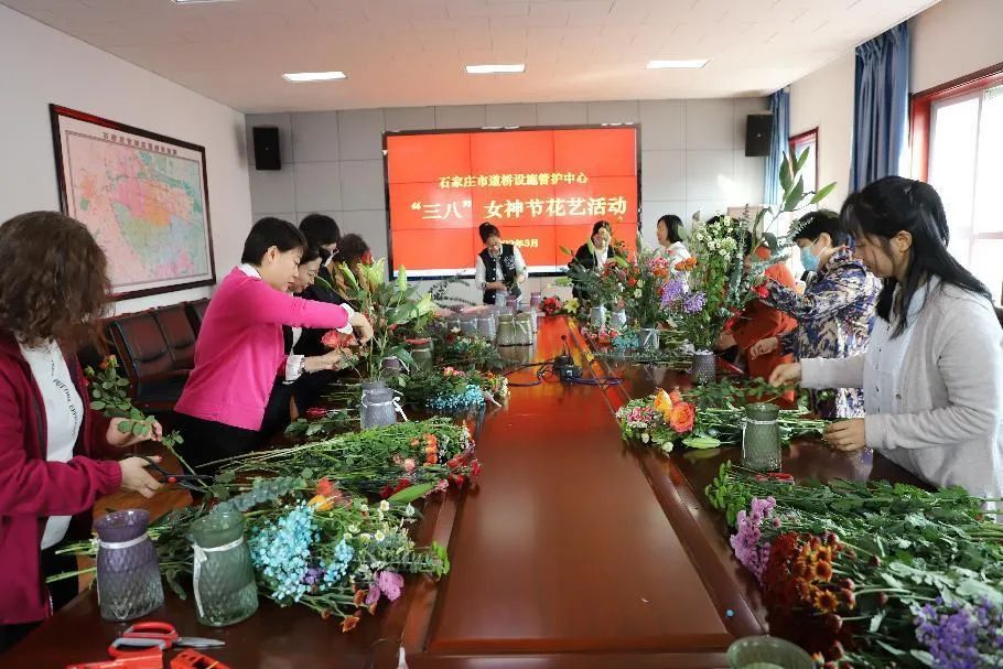 3月8日上午,道桥中心机关组织全体女职工开展“庆三八”插花体验活动,大家根据自己的花材特色,纷纷展示自己的创意,创作出一盆盆错落有致、创意十足的作品。