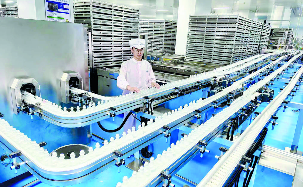 石家庄四药集团持续优化创新生态体系,深入推进产品管线布局与开发工作。图为该集团繁忙的输液药品数智化生产线。