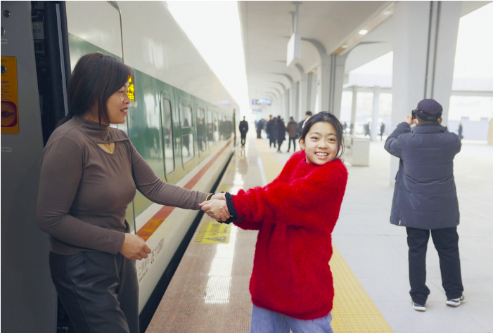来自山西阳泉的自媒体博主王女士在C800次列车抵达石家庄北站后,特意下车进行拍摄记录。“这趟列车是我盼望已久的,我要好好看看石家庄北站。”她一边用镜头捕捉车站细节一边说,“非常好,非常大气!”