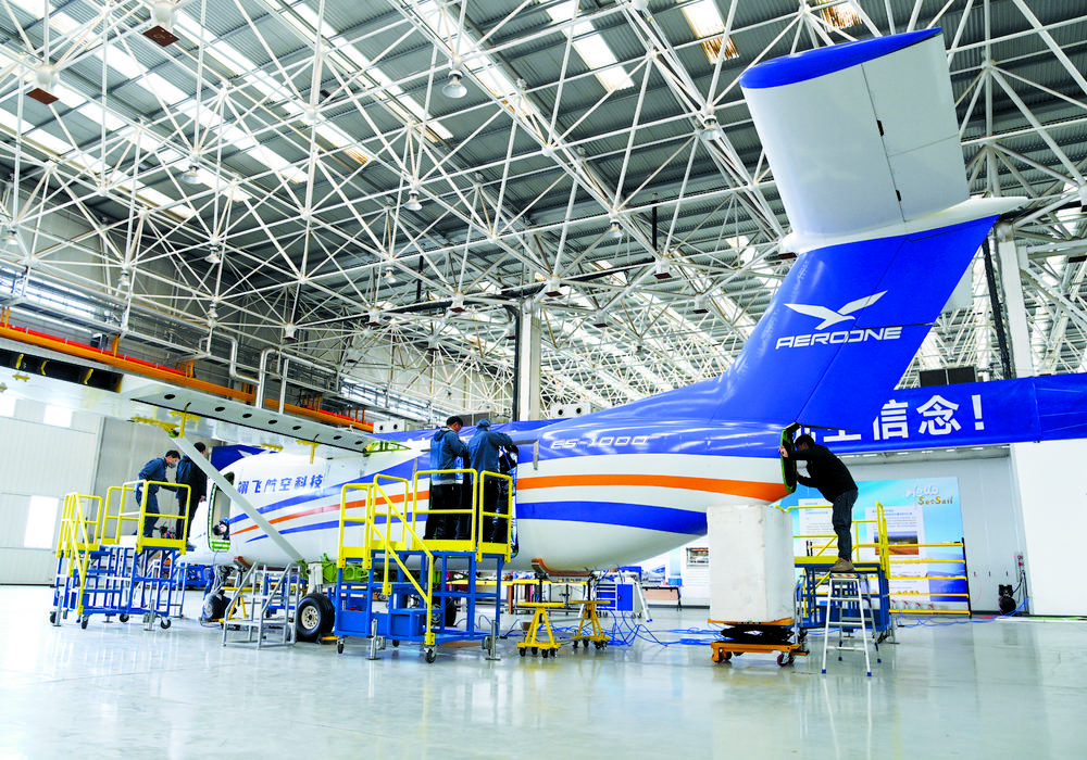在位于河北省石家庄装备制造产业园的翊飞航空科技(石家庄)有限公司,工作人员在进行大型无人运输机的研发。