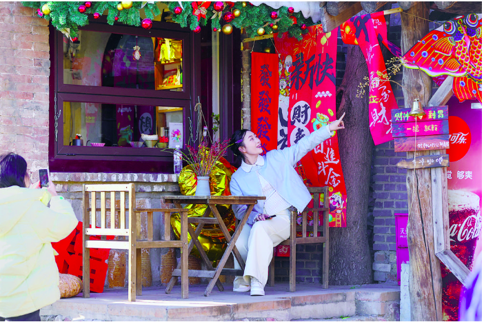 图为春节假期,游客在石家庄市井陉县南横口村游玩,乐享节日幸福时光。