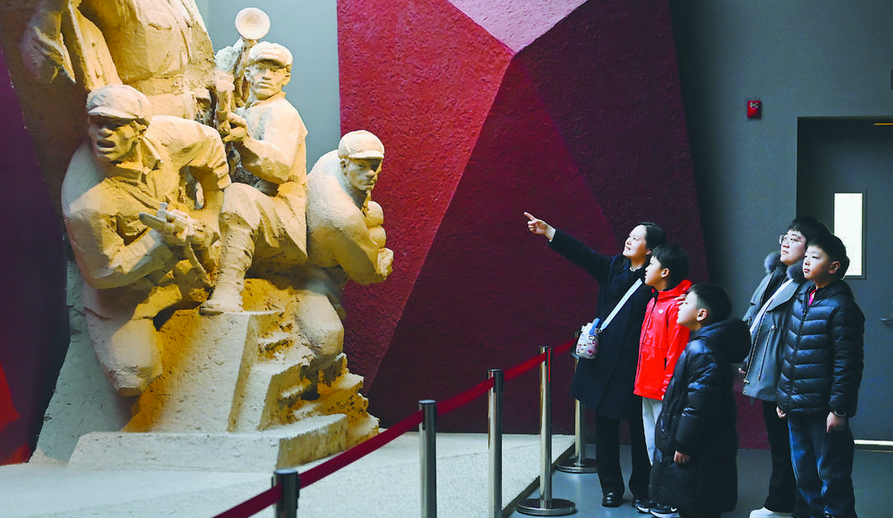 2月14日,家长和孩子们在石家庄解放纪念馆参观学习。