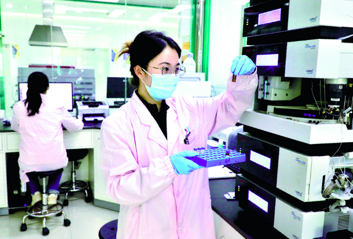 石家庄四药集团研发中心的研发人员正在进行新药的研发实验。
