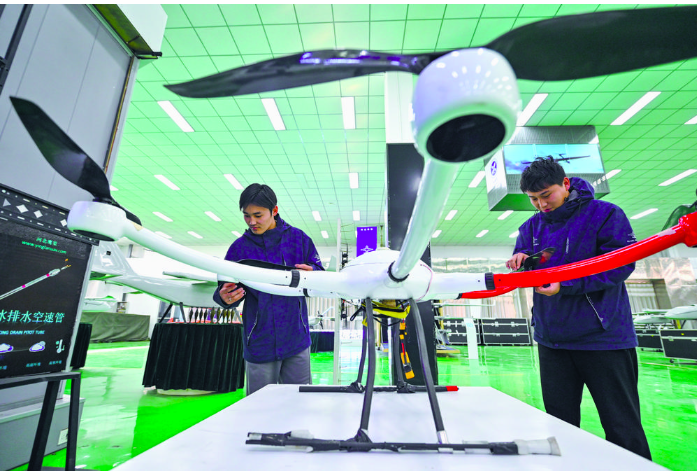在河北鹰览自动化科技有限公司,技术人员对无人机设备进行检查。