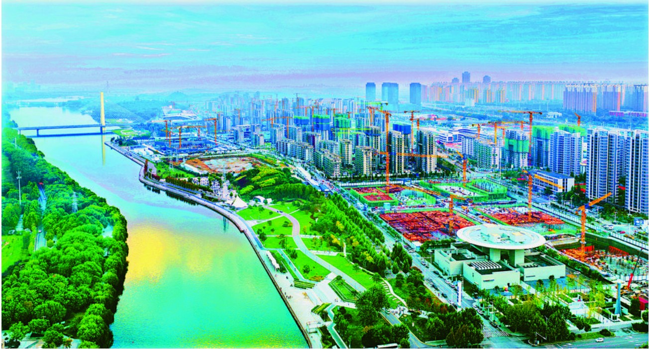 时值仲秋,天高云淡。阳光洒在环绕城区东南部的环城水系上,水面波光粼粼,清爽宜人。三五成群的市民或漫步于滨水步道,或小憩于休闲长椅,尽情享受着城市中的自然野趣。