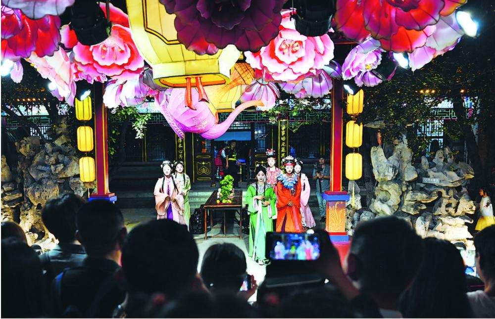 许多游客前来体验“一梦入红楼”沉浸夜游活动。