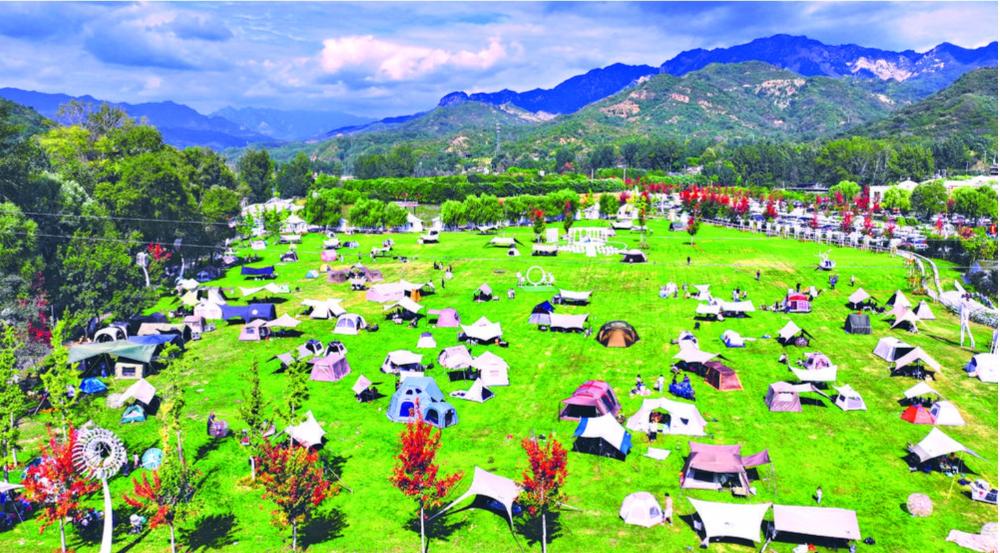 ↑节日期间,游客在灵寿县锦绣大明川景区露营地休闲度假。