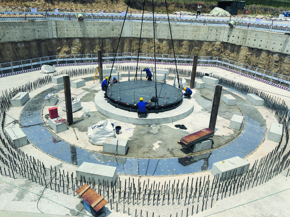 衡昔高速南水北调特大桥15号墩转体支座安装施工现场。