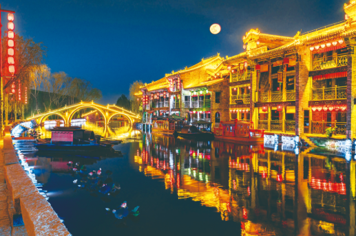 记者走访发现,在石家庄,龙泉古镇戏剧幻城、德明古镇等地赋予了古镇独特的魅力。青石板路上,身着古装的商贩沿街叫卖,非遗代表性传承人现场展示糖画技艺,戏台上的梆子戏引得游人驻足。游走其间,光影技术勾勒出的古建筑轮廓与实景交融,游客既能品尝缸炉烧饼等特色美食,又能参与古风游船、民俗体验等活动,仿佛穿越到古代的繁华街市。