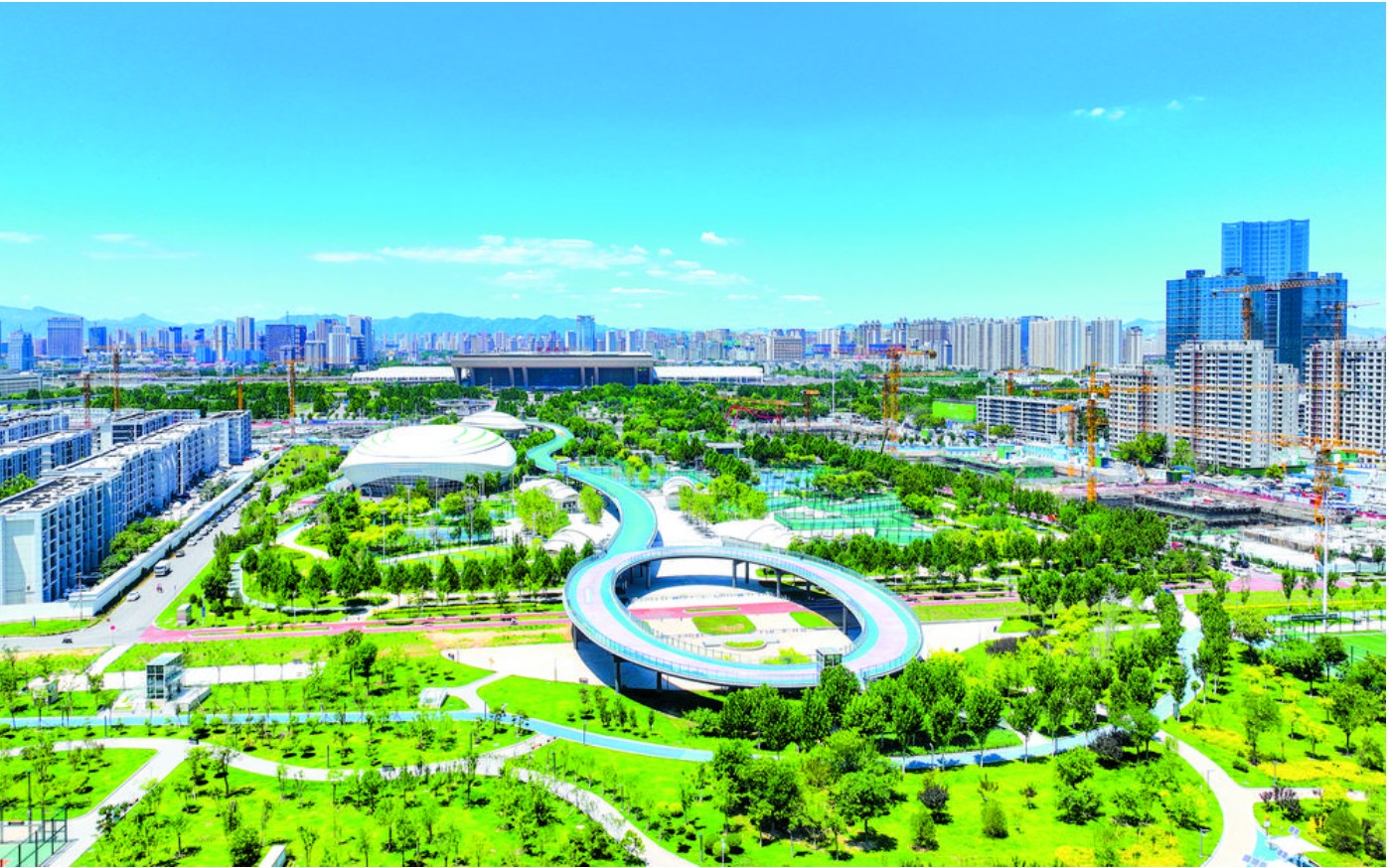 漫步在高铁片区,中央绿色体育公园里跃动的身影与绚丽的如意彩虹交相辉映,蓬勃朝气扑面而来;
