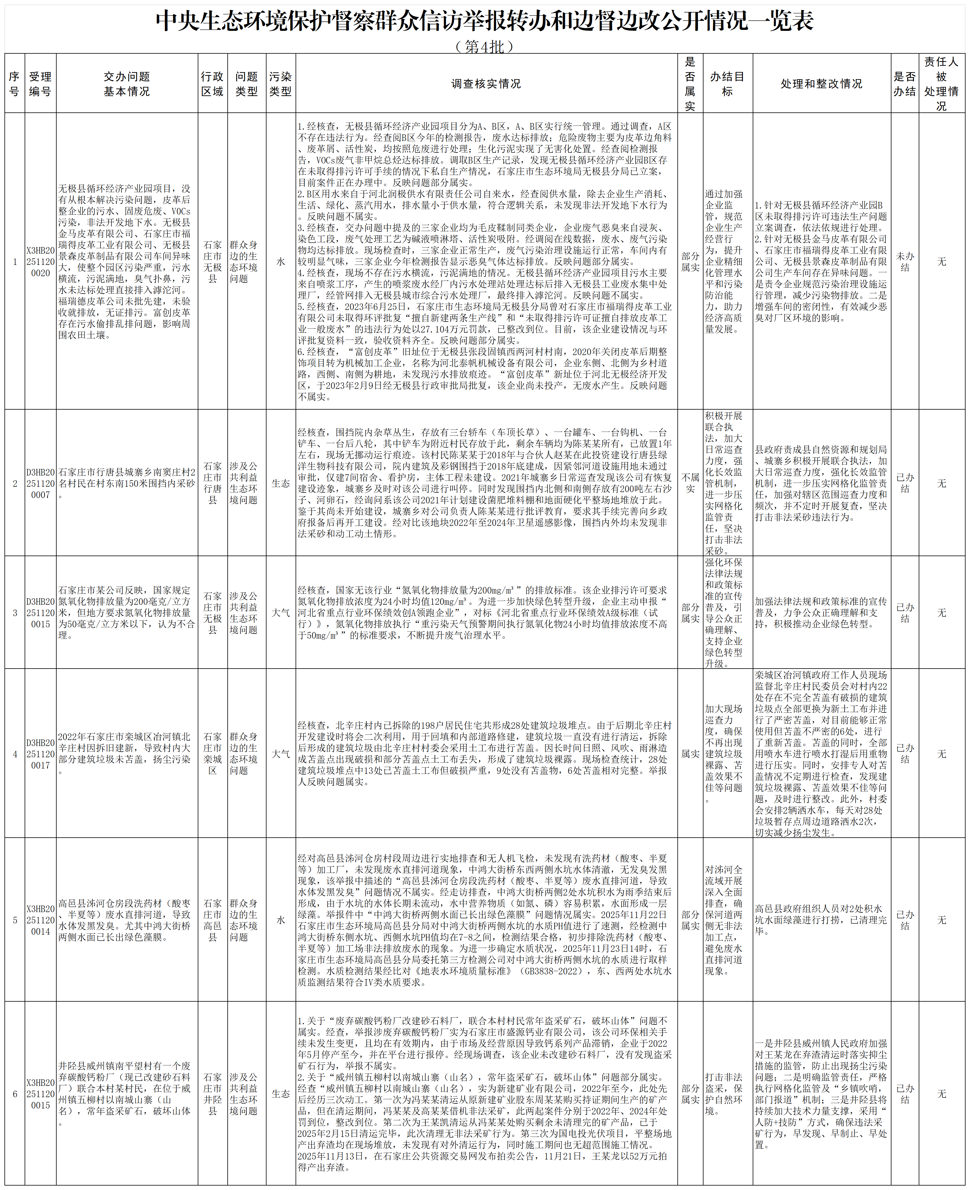 中央生态环境保护督察组交办石家庄市第四批群众信访举报案件办理情况