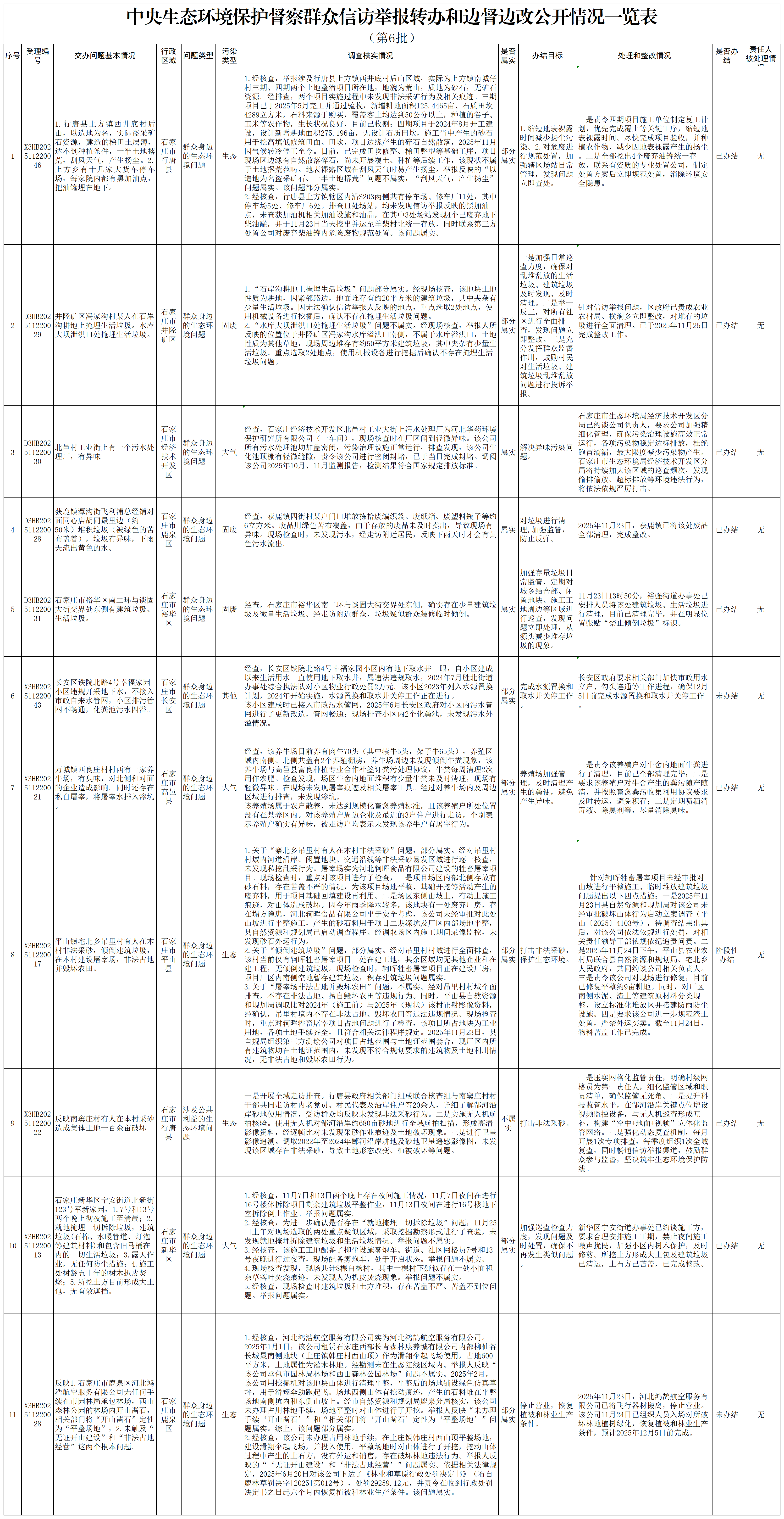 中央生态环境保护督察组交办石家庄市第六批群众信访举报案件办理情况