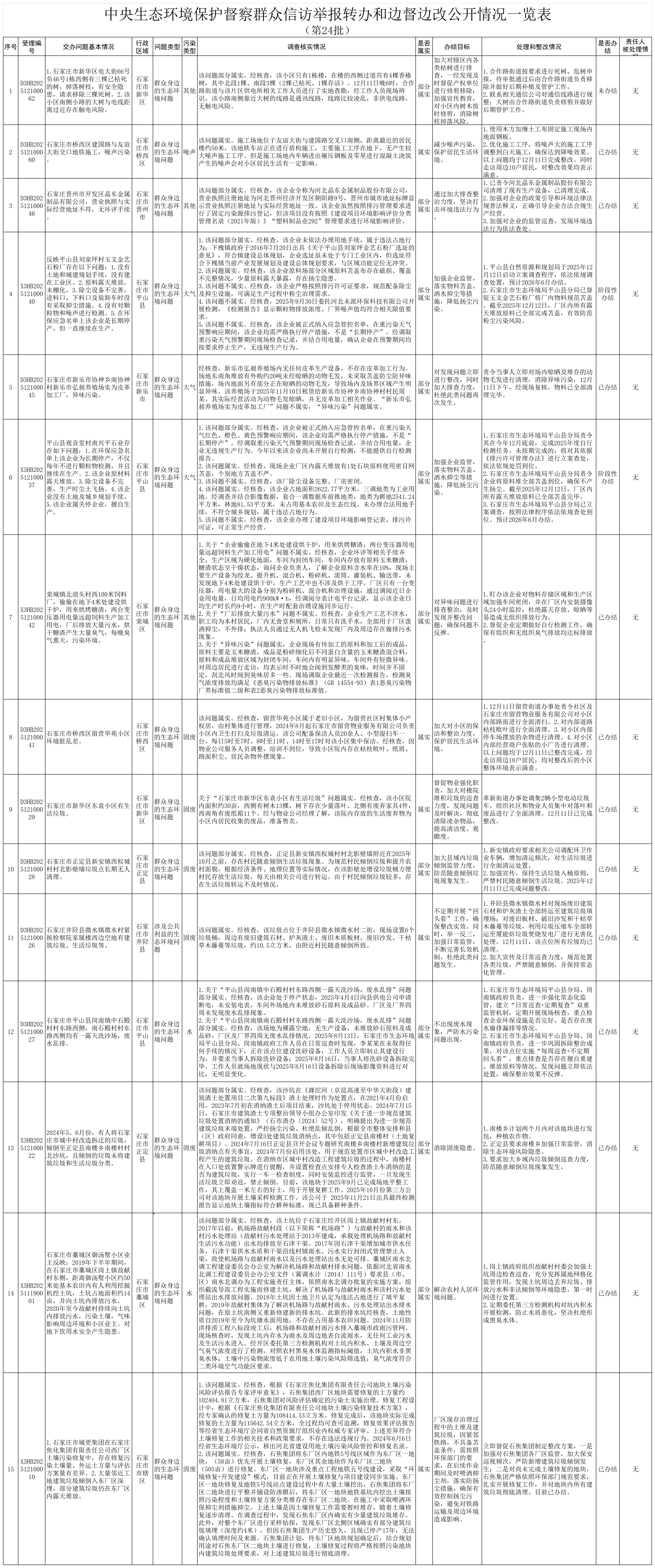 附件:中央生态环境保护督察群众信访举报转办和边督边改公开情况一览表(第24批)