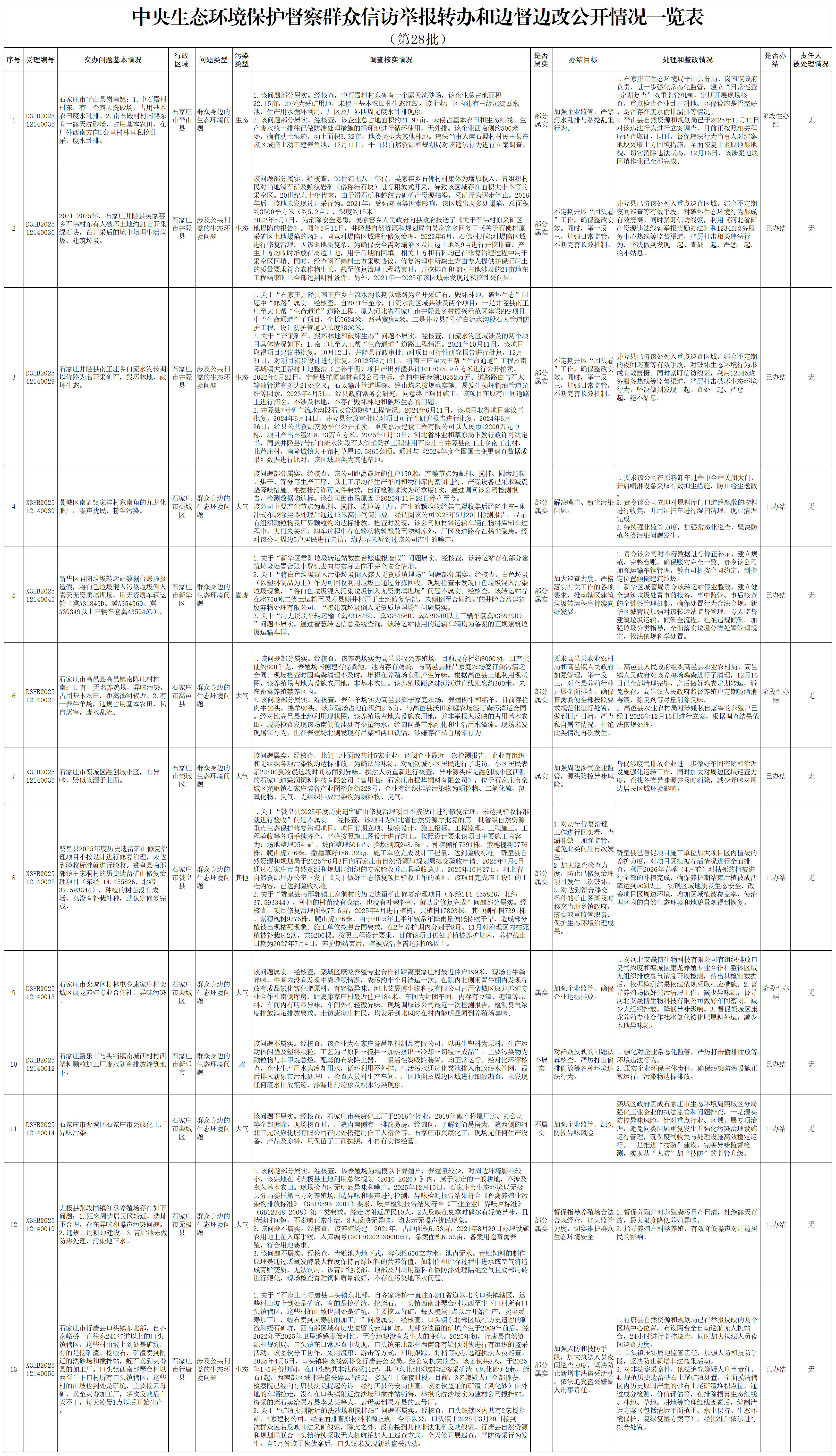中央生态环境保护督察群众信访举报转办和边督边改公开情况一览表(第28批)
