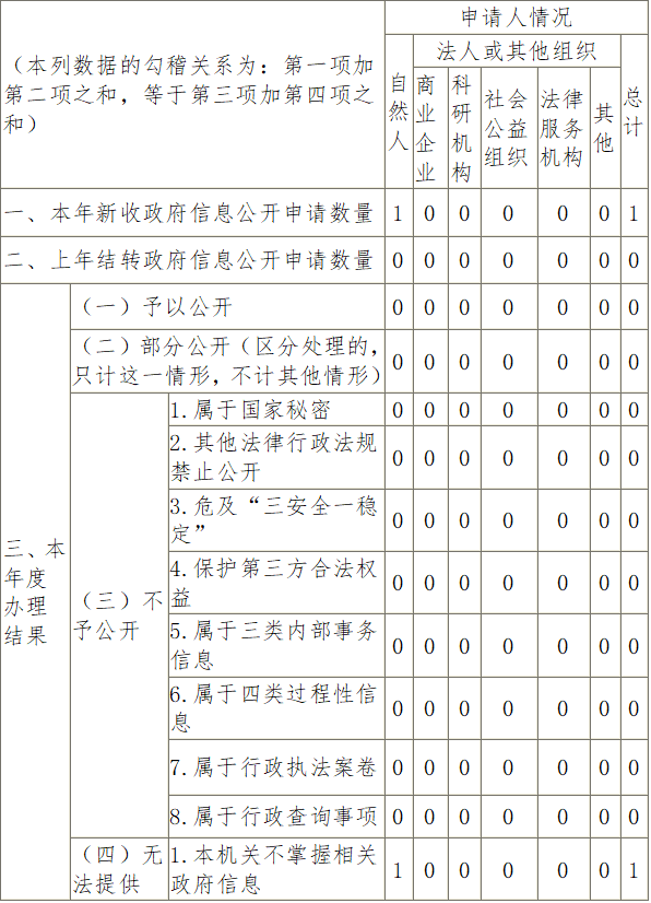 严格执行《中华人民共和国政府信息公开条例》各项规定,坚持依法、规范、高效办理政府信息公开申请。在办理的同时,加强与申请人的有效沟通,详细询问实际诉求,做到精准回应、充分释疑,切实增强依申请公开办理实效。2025年,全年收到公众申请公开政府信息的申请1条,已按照要求第一时间告知申请人。