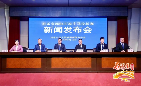 3月19日,石家庄市政府新闻办召开“君乐宝2024石家庄马拉松赛”新闻发布会。石家庄市人民政府副秘书长张东生,石家庄市体育局党组书记、局长任维维,石家庄市文化广电和旅游局党组成员、副局长孙瑞峰;君乐宝乳业集团总裁助理兼新闻发言人冯进茂,河北野人体育文化发展有限公司总经理李桐分别介绍赛事相关筹备情况,并答记者问。