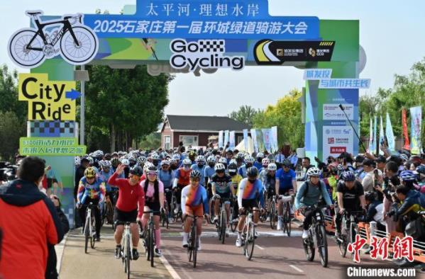 中新网石家庄5月4日电(俱凝搏 翟羽佳)4日,2025石家庄第一届环城绿道骑游大会在环城绿道举行,吸引了1800名骑行爱好者参加。