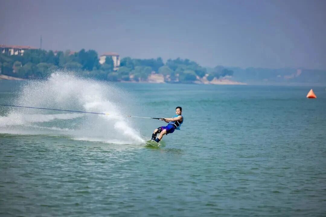 赞皇县天台湖户外运动基地拥有4500余亩的广阔水域,水深适中、风力稳定。该基地主要分为水上运动区和休闲岸钓区、路亚鲈钓区,是我国内陆地区最适合开展水上运动的优良场地之一。其中,休闲岸钓区设置垂钓平台浮筒栈道1490米和水上船坞16个,路亚鲈钓区设置路亚码头和游艇停泊位,可承接各级专业赛事;水上运动区可举办摩托艇、桨板、风翼板、尾波冲浪等各类水上运动。近年来,石家庄市体育事业蓬勃发展,赞皇县依托自身资源禀赋,乘着全市打造“活力之城”的东风,坚持“文化+旅游+体育”的融合发展理念,探索出一条农文体旅融合发展新路径。“天台湖户外运动基地自建成运营以来,多次承接国际国内赛事,是赞皇县深化农文体旅融合发展的生动实践,也是开展‘走亲住农家 暖心办实事’活动的丰硕成果。如今的赞皇紧紧围绕‘1567’总体工作思路,以运动活力激发文旅潜能,体育事业与旅游发展相互促进,走出了一条生态赋能、赛事引流、文旅共生之路。”赞皇县相关负责人表示。